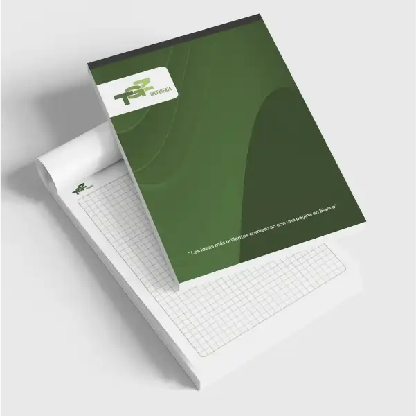 A diferencia del block, lleva una Portada y Contraportada fabricada en cartulina estructurada (Foldcote o Couché 300gr) debidamente plastificada.