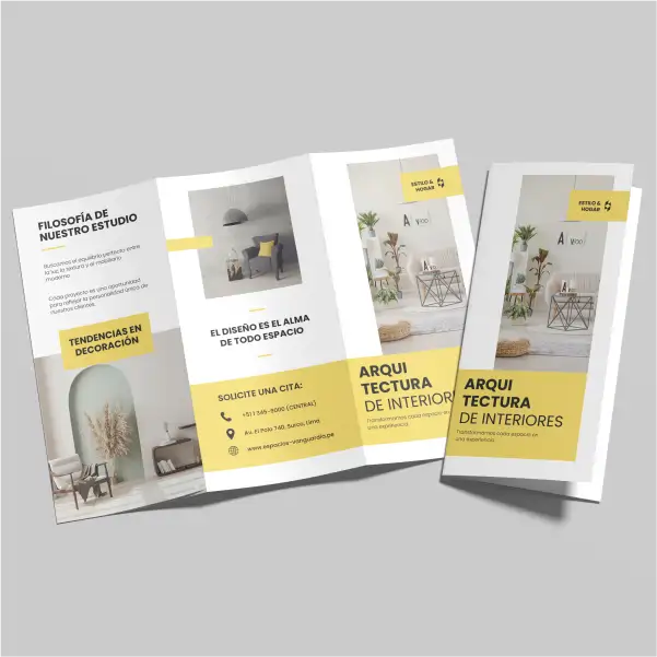 Un volante tradicional es ideal para ofertas de un solo vistazo, pero cuando necesitas explicar los beneficios de un servicio, los precios de un menú o las instalaciones de una clínica, necesitas un formato que organice la lectura. Los trípticos y dípticos corporativos actúan como pequeños vendedores de bolsillo: su estructura por paneles guía al cliente a través de una historia visual hasta llevarlo al llamado a la acción.