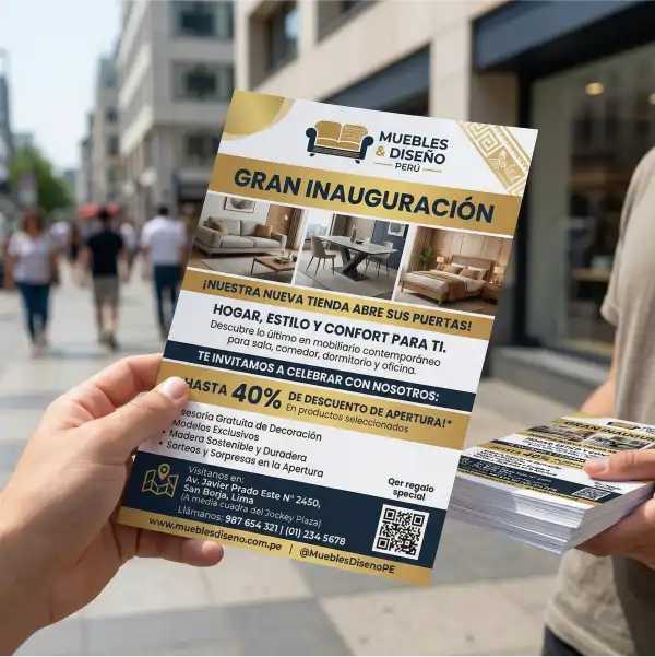 Totalmente. El servicio estándar de nuestra imprenta es a Full Color (CMYK) por ambas caras (Tira y Retira). Aprovecha el frente para un título gigante que capte la atención, y el reverso para detallar la promoción, los términos, tus redes sociales y el Código QR de acción.